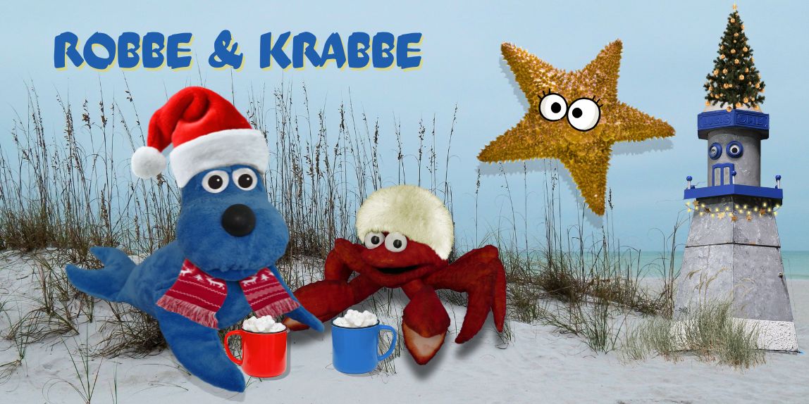Rund um den Leuchttum LUCY LIGHTHOUSE sind alle in Weihnachtsvorbereitungen: Leuchtturmwärter AXEL hat den Baum geholt, ROBBE übt Weihnachtslieder und KRABBE befestigt die Lichterkette mit funkelnden Sternen.
